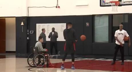 5月20日 此前,开拓者球员发展教练兼视频协调员Jon Yim遭遇了一次严重的车祸,今日,Yim教练坐在了轮椅上重新回到了开拓者球队的训练场地。